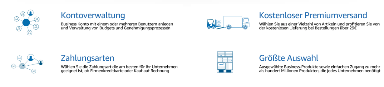 Met Amazon Business richt de marktplaats zich op de zakelijke klanten, een markt die vele malen groter is dan de consumentenmarkt en dus veel kansen biedt. Na een succesvolle start in Amerika is het platform voor de zakelijke markt onder de naam “Amazon Business” nu ook gelanceerd in Duitsland.